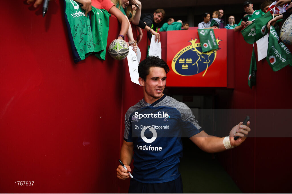 19 July 2019; Joey Carbery takes a selfie with fans following an Ireland Rugby open training session at Thomond Park in Limerick. Photo by David Fitzgerald/Sportsfile