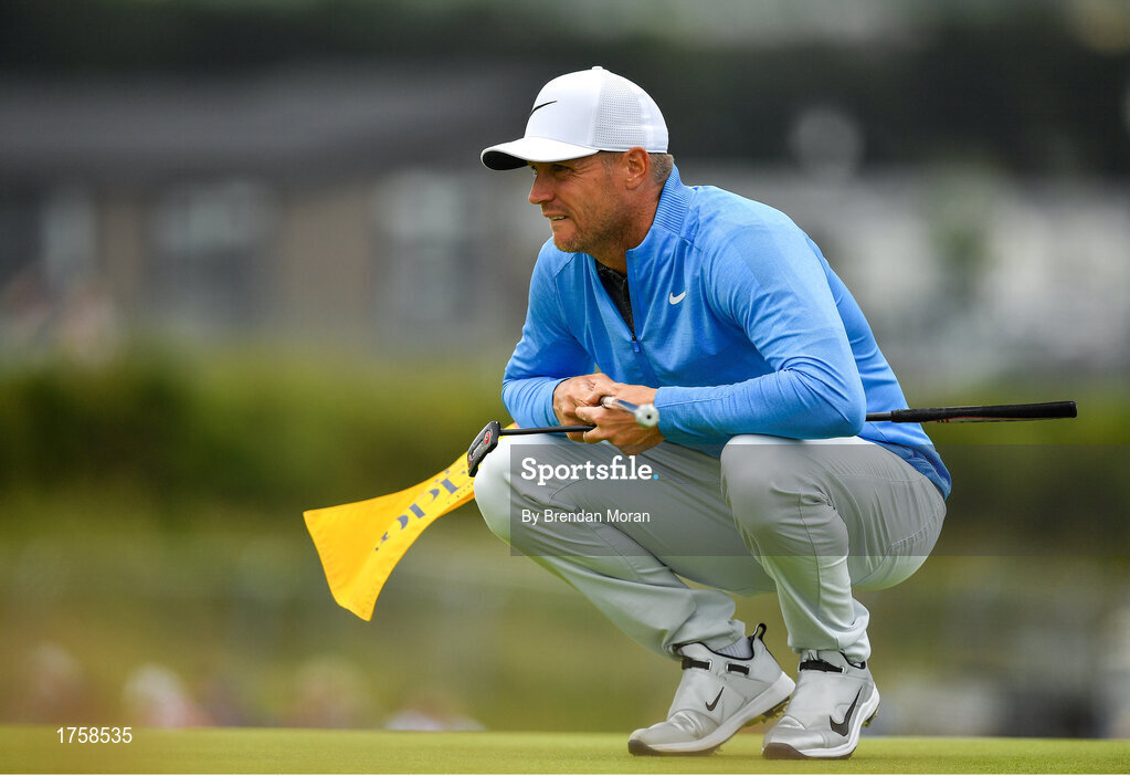 20 July 2019; Alex Noren of Sweden lines up a putt on the 1st green during Day Three of the 148th Open Championship at Royal Portrush in Portrush, Co Antrim. Photo by Brendan Moran/Sportsfile