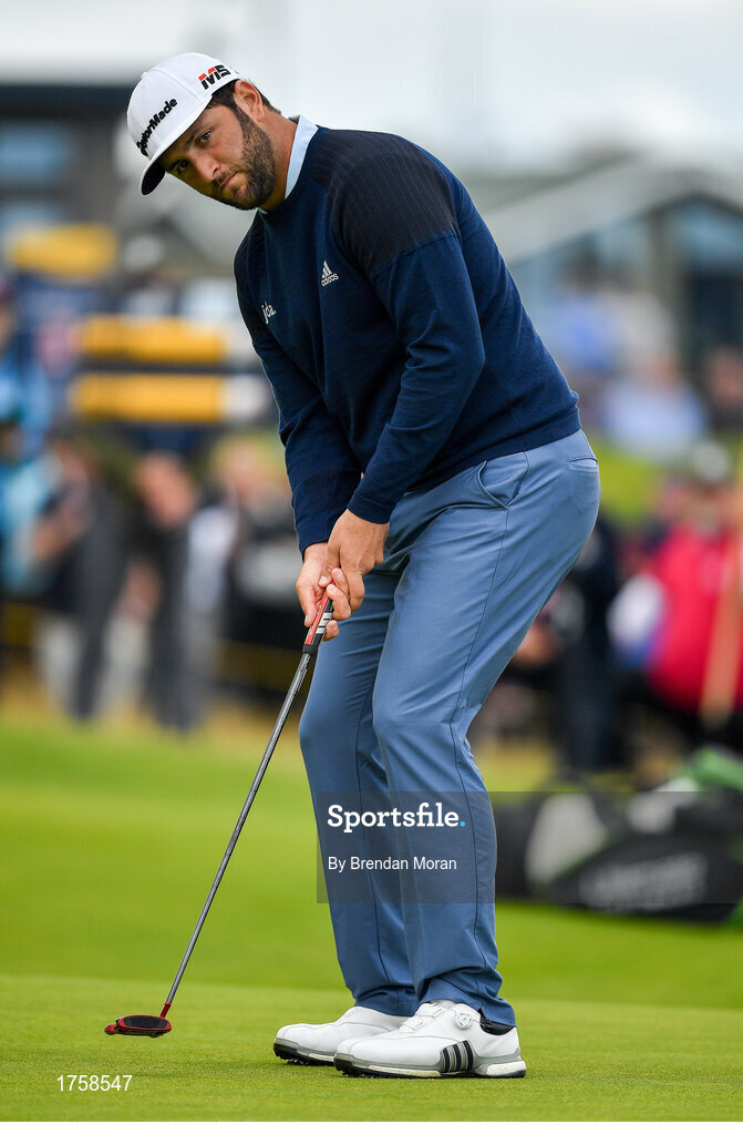 20 July 2019; Jon Rahm of Spain reacts to a missed putt on the 1st green during Day Three of the 148th Open Championship at Royal Portrush in Portrush, Co Antrim. Photo by Brendan Moran/Sportsfile