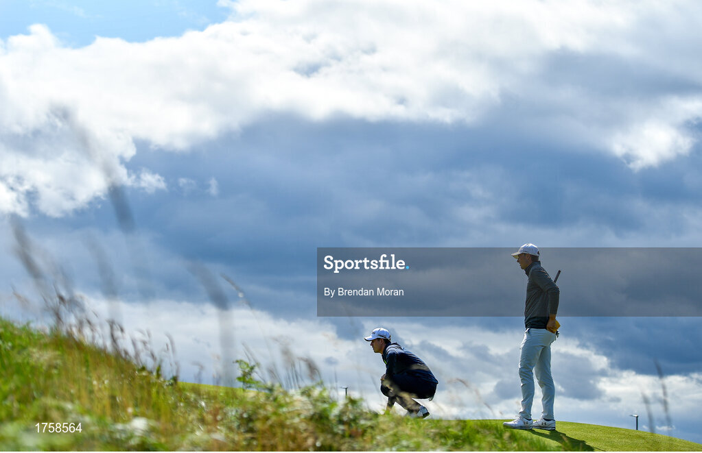 20 July 2019; Jordan Spieth of USA, right, and Andrew Putnam of USA line up their putts on the 1st green during Day Three of the 148th Open Championship at Royal Portrush in Portrush, Co Antrim. Photo by Brendan Moran/Sportsfile