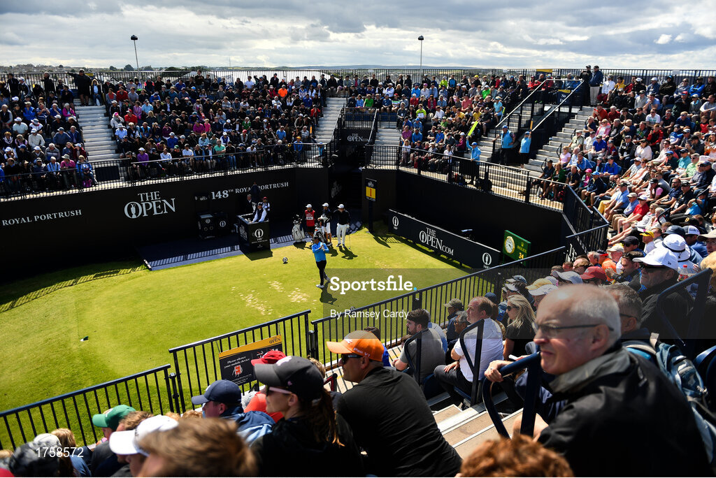 20 July 2019; Brooks Koepka of USA watches his tee shot on the 1st hole during Day Three of the 148th Open Championship at Royal Portrush in Portrush, Co Antrim. Photo by Ramsey Cardy/Sportsfile