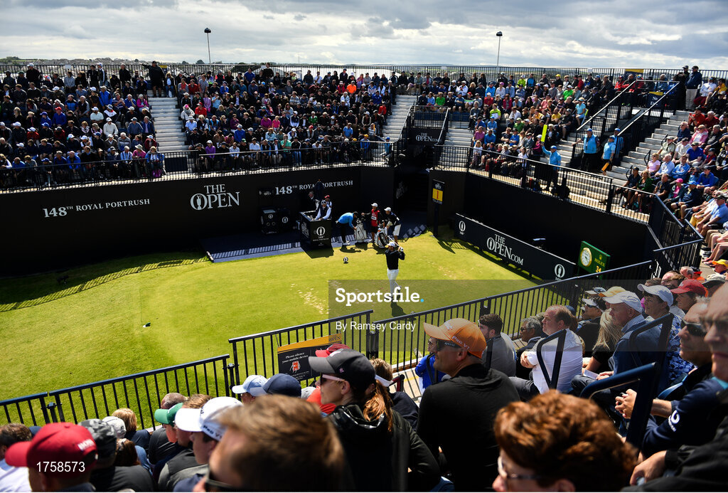 20 July 2019; Justin Rose of England watches his tee shot on the 1st hole during Day Three of the 148th Open Championship at Royal Portrush in Portrush, Co Antrim. Photo by Ramsey Cardy/Sportsfile
