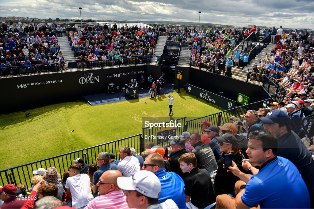 20 July 2019; Tommy Fleetwood of England hits a tee shot from the 1st tee box during Day Three of the 148th Open Championship at Royal Portrush in Portrush, Co Antrim. Photo by Ramsey Cardy/Sportsfile