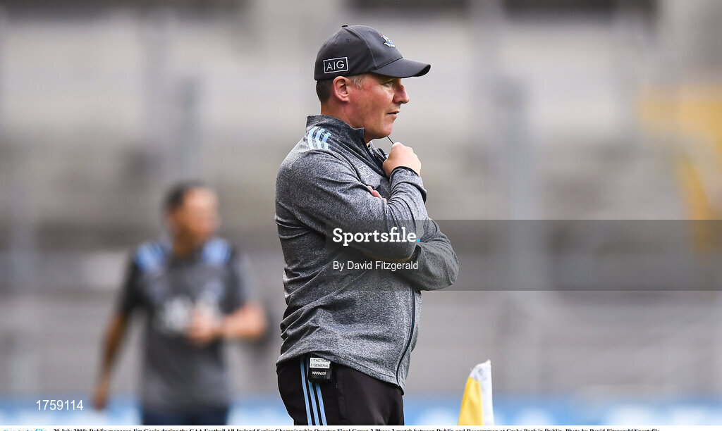 20 July 2019; Dublin manager Jim Gavin during the GAA Football All-Ireland Senior Championship Quarter-Final Group 2 Phase 2 match between Dublin and Roscommon at Croke Park in Dublin. Photo by David Fitzgerald/Sportsfile
