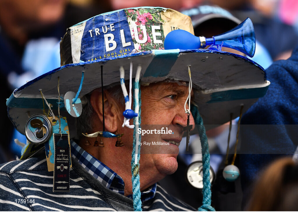 20 July 2019; A Dublin supporter, in the Cusack Stand, before the GAA Football All-Ireland Senior Championship Quarter-Final Group 2 Phase 2 match between Dublin and Roscommon at Croke Park in Dublin. Photo by Ray McManus/Sportsfile