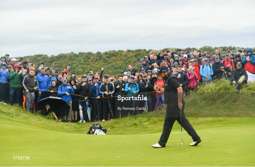 21 July 2019; Shane Lowry of Ireland reacts after making a putt on the 10th green during Day Four of the 148th Open Championship at Royal Portrush in Portrush, Co Antrim. Photo by Ramsey Cardy/Sportsfile