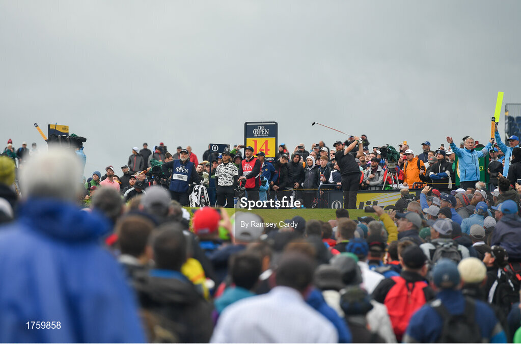 21 July 2019; Shane Lowry of Ireland plays a tee shot from the 14th tee box during Day Four of the 148th Open Championship at Royal Portrush in Portrush, Co Antrim. Photo by Ramsey Cardy/Sportsfile