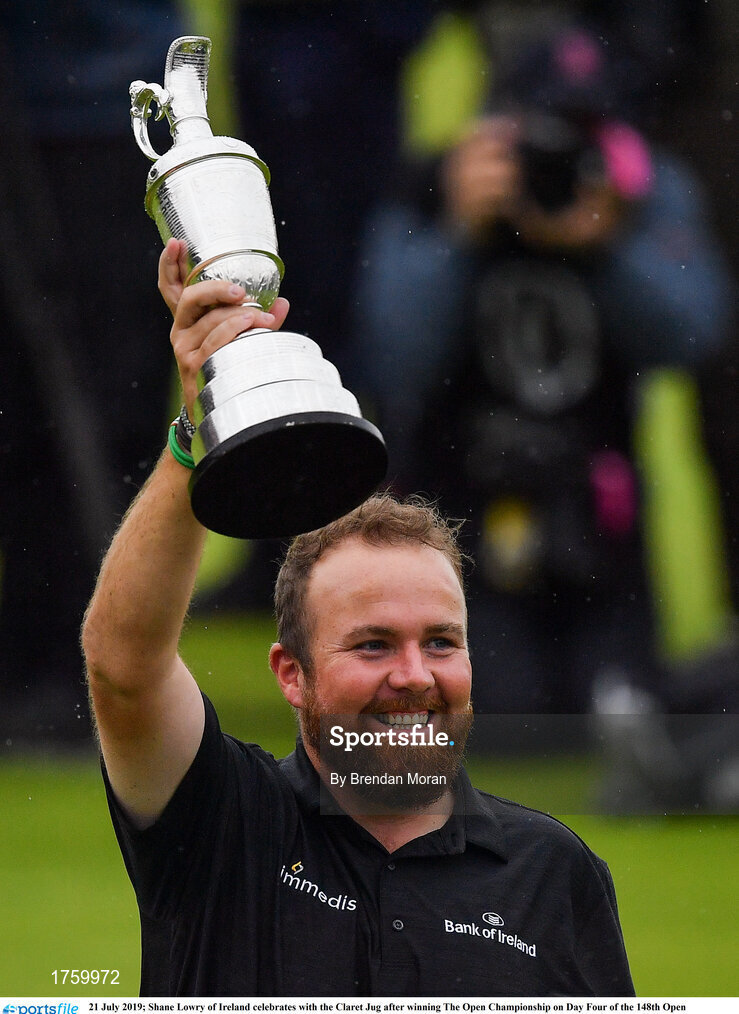21 July 2019; Shane Lowry of Ireland celebrates with the Claret Jug after winning The Open Championship on Day Four of the 148th Open Championship at Royal Portrush in Portrush, Co Antrim. Photo by Brendan Moran/Sportsfile