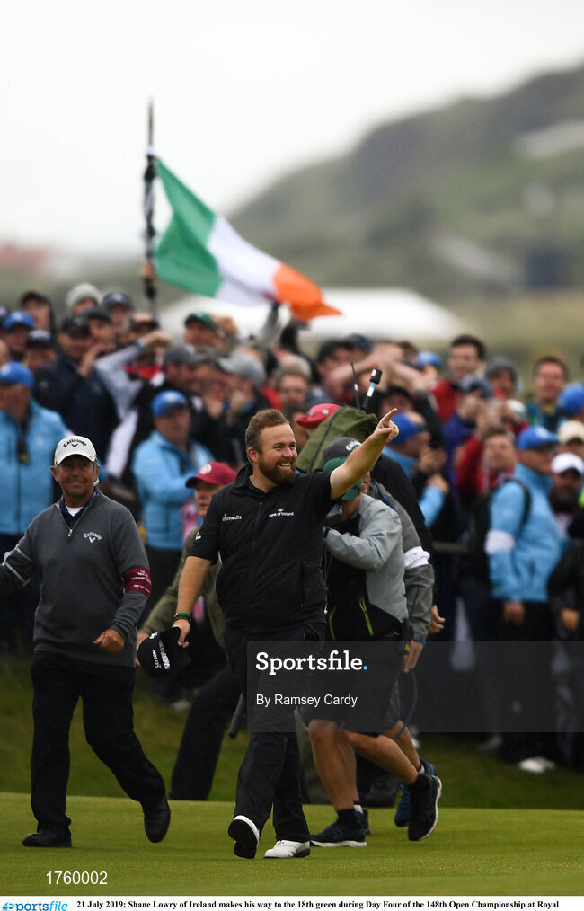 21 July 2019; Shane Lowry of Ireland makes his way to the 18th green during Day Four of the 148th Open Championship at Royal Portrush in Portrush, Co Antrim. Photo by Ramsey Cardy/Sportsfile