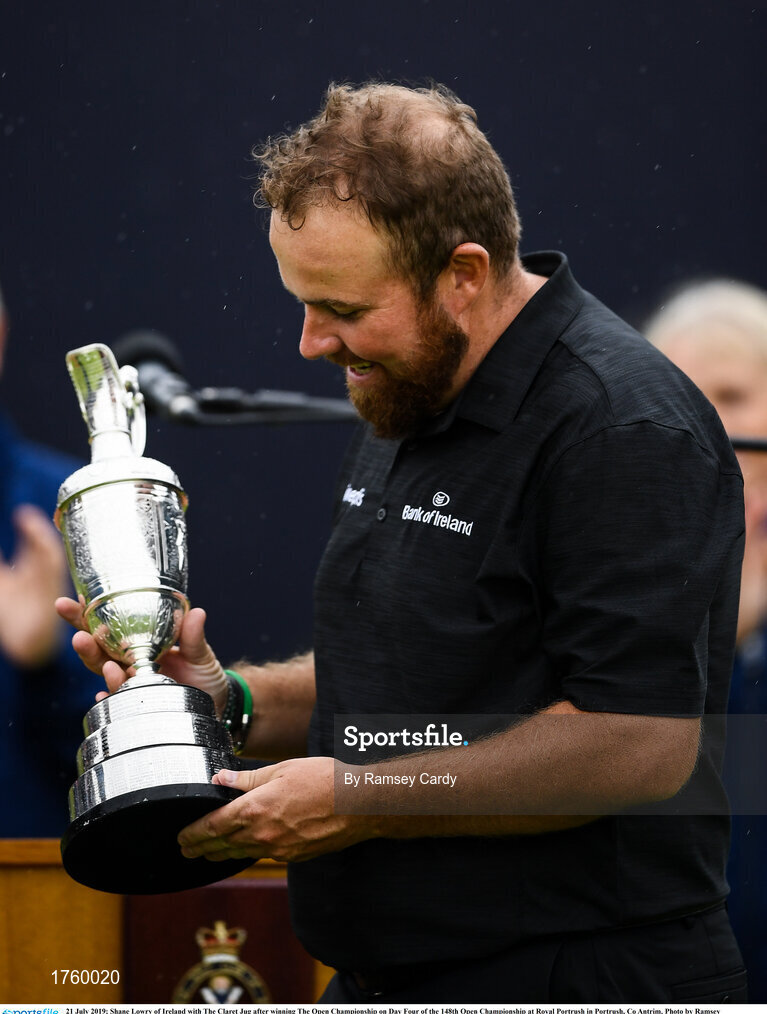 21 July 2019; Shane Lowry of Ireland with The Claret Jug after winning The Open Championship on Day Four of the 148th Open Championship at Royal Portrush in Portrush, Co Antrim. Photo by Ramsey Cardy/Sportsfile
