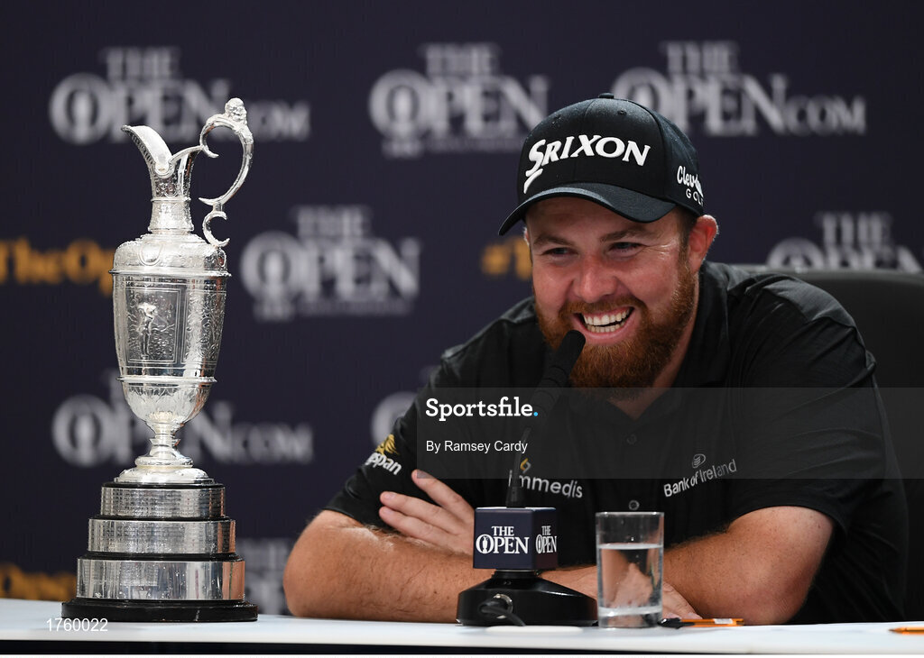 21 July 2019; Shane Lowry of Ireland with the Claret Jug in a press conference after winning the Open Championship on Day Four of the 148th Open Championship at Royal Portrush in Portrush, Co Antrim. Photo by Ramsey Cardy/Sportsfile