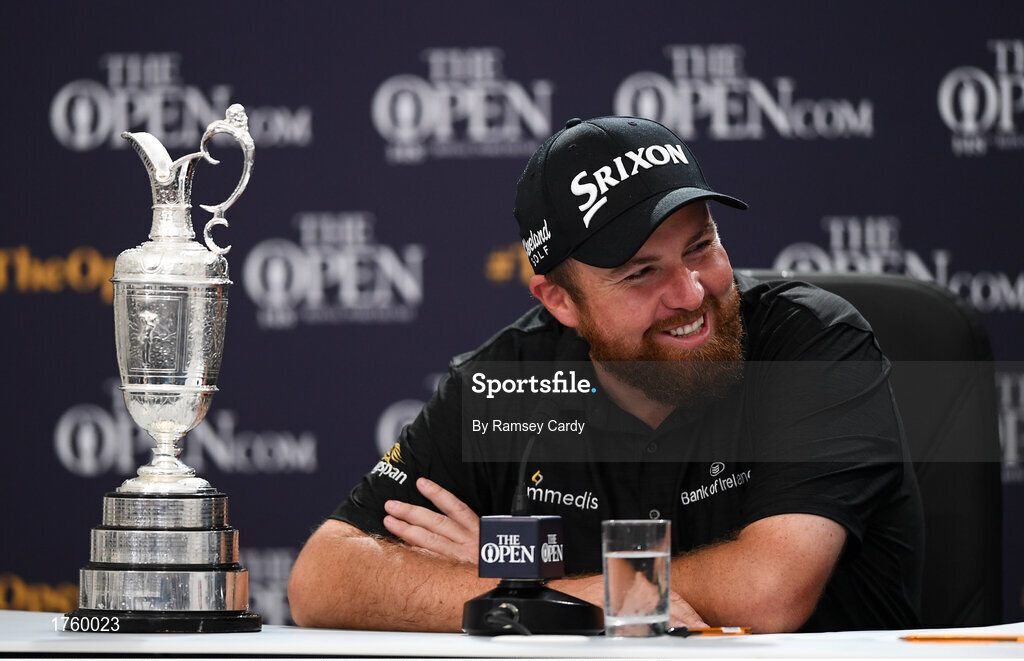 21 July 2019; Shane Lowry of Ireland with the Claret Jug in a press conference after winning the Open Championship on Day Four of the 148th Open Championship at Royal Portrush in Portrush, Co Antrim. Photo by Ramsey Cardy/Sportsfile