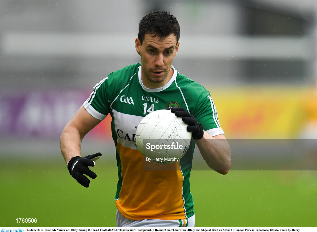 23 June 2019; Niall McNamee of Offaly during the GAA Football All-Ireland Senior Championship Round 2 match between Offaly and Sligo at Bord na Mona O'Connor Park in Tullamore, Offaly. Photo by Harry Murphy/Sportsfile