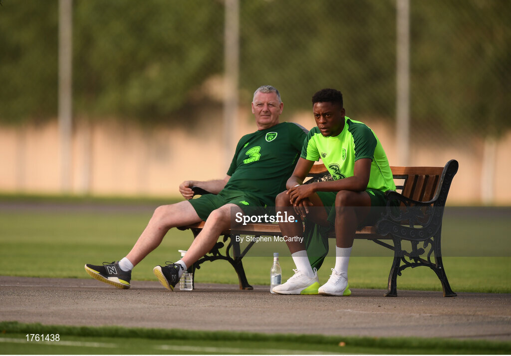 23 July 2019; Jonathan Afolabi and equipment manager John Crudden watch on during a Republic of Ireland training session at the FFA Technical Centre ahead of their semi-final game of the 2019 UEFA European U19 Championships in Yerevan, Armenia. Photo by Stephen McCarthy/Sportsfile
