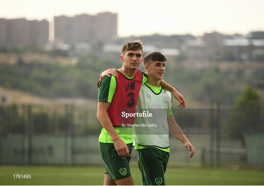 23 July 2019; Oisin McEntee, left, and Barry Coffey during a Republic of Ireland training session at the FFA Technical Centre ahead of their semi-final game of the 2019 UEFA European U19 Championships in Yerevan, Armenia. Photo by Stephen McCarthy/Sportsfile