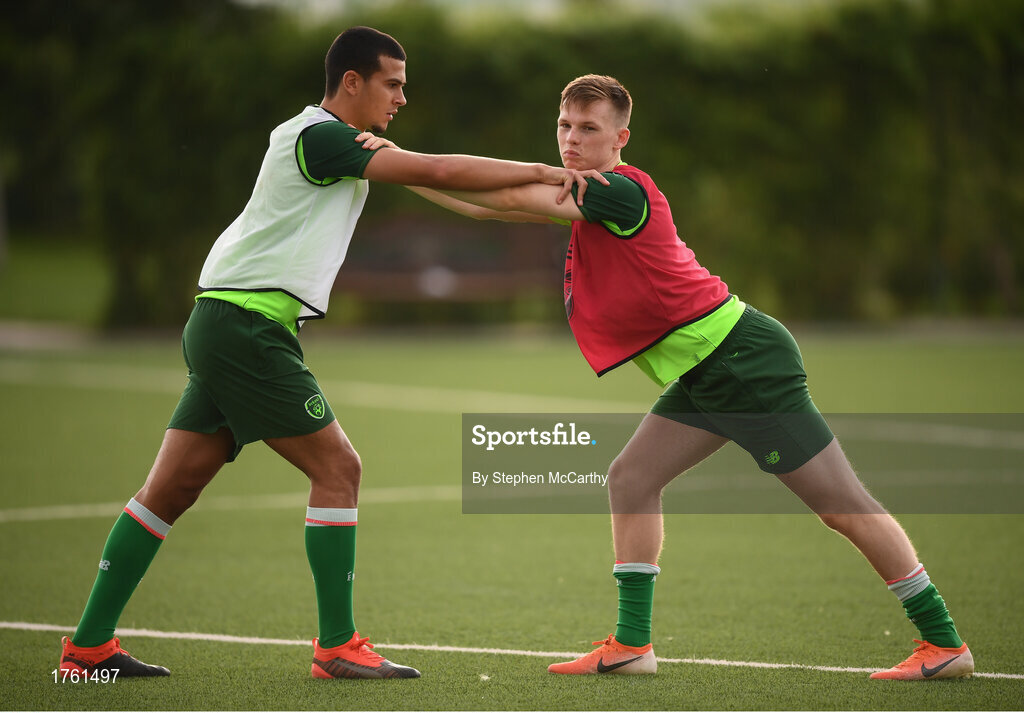 23 July 2019; Ali Reghba and Andy Lyons, right, during a Republic of Ireland training session at the FFA Technical Centre ahead of their semi-final game of the 2019 UEFA European U19 Championships in Yerevan, Armenia. Photo by Stephen McCarthy/Sportsfile