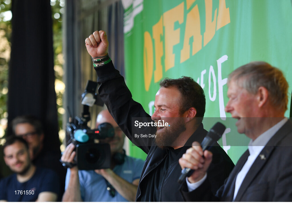 23 July 2019; The 2019 Open Champion Shane Lowry, left, and Michéal O Muircheartaigh at his homecoming event in Clara in Offaly. Photo by Seb Daly/Sportsfile