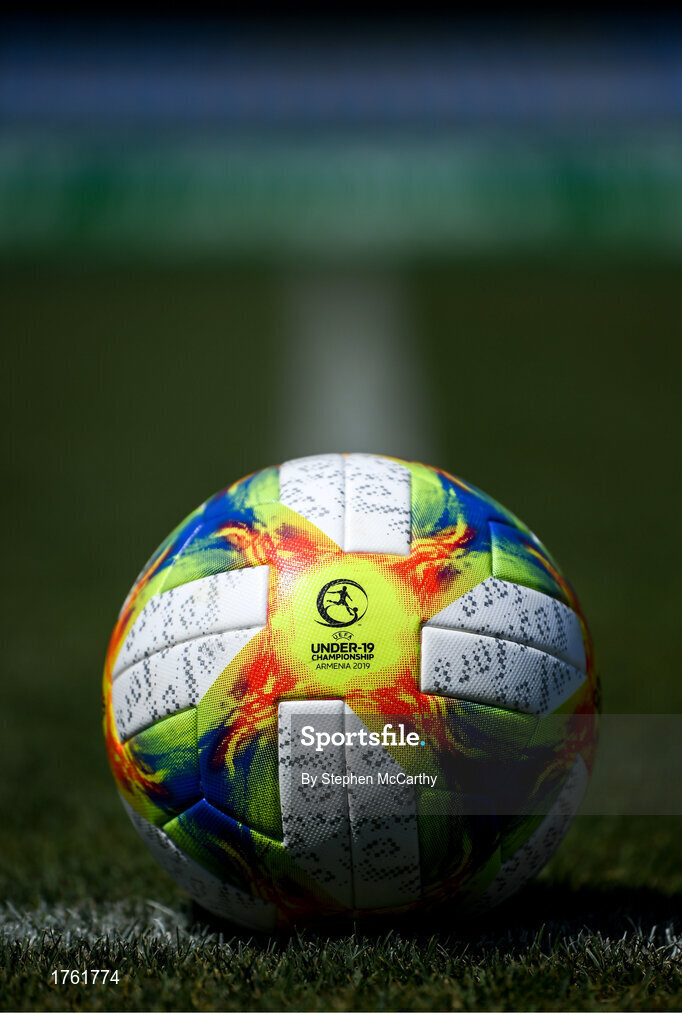 24 July 2019; The matchball is seen at Banants Stadium prior to the 2019 UEFA U19 Championships semi-final match between Portugal and Republic of Ireland at Banants Stadium in Yerevan, Armenia. Photo by Stephen McCarthy/Sportsfile