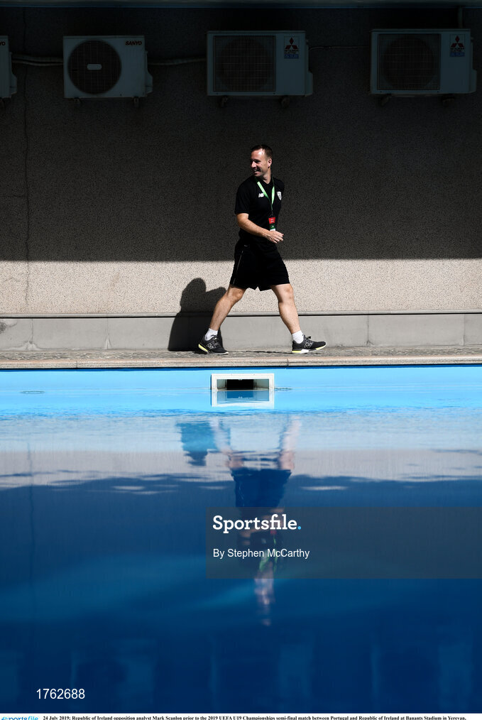 24 July 2019; Republic of Ireland opposition analyst Mark Scanlon prior to the 2019 UEFA U19 Championships semi-final match between Portugal and Republic of Ireland at Banants Stadium in Yerevan, Armenia. Photo by Stephen McCarthy/Sportsfile