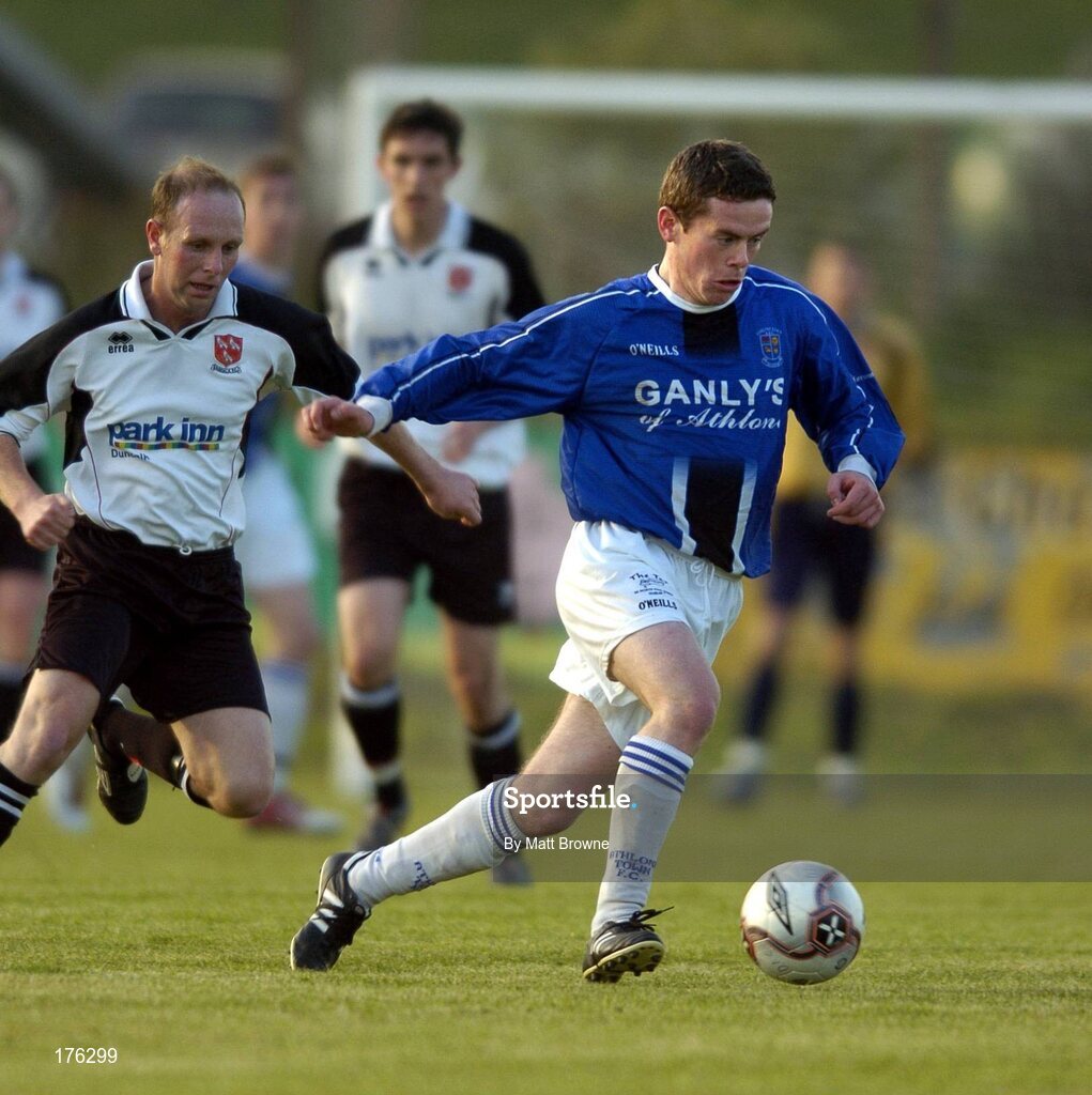 12 May 2005; Damien Rushe, Athlone , in action against Alan Murphy, Dundalk Town. eircom league, First Division, Dundalk v Athlone Town, Century Homes Park, Co. Monaghan. Picture credit; Matt Browne / SPORTSFILE