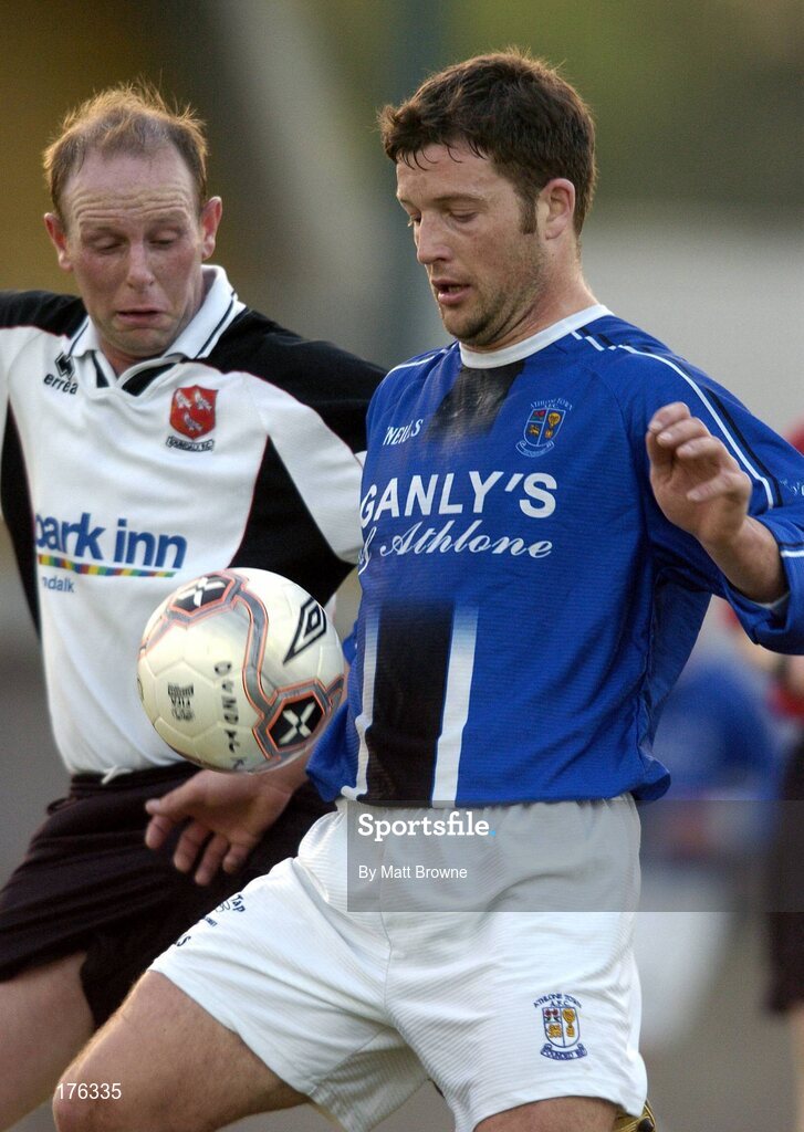 12 May 2005; John Flanagan, Athlone, in action against Thomas Morgan, Dundalk Town. eircom league, First Division, Dundalk v Athlone Town, Century Homes Park, Co. Monaghan. Picture credit; Matt Browne / SPORTSFILE