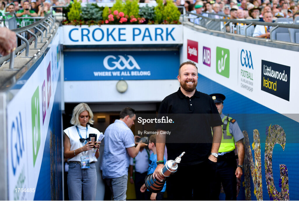 27 July 2019; The 2019 Open Champion Shane Lowry with the Claret Jug ahead of the GAA Hurling All-Ireland Senior Championship Semi-Final match between Kilkenny and Limerick at Croke Park in Dublin. Photo by Ramsey Cardy/Sportsfile