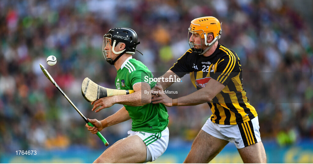 27 July 2019; Darragh O'Donovan of Limerick is tackled by Billy Ryan of Kilkenny during the GAA Hurling All-Ireland Senior Championship Semi-Final match between Kilkenny and Limerick at Croke Park in Dublin. Photo by Ray McManus/Sportsfile