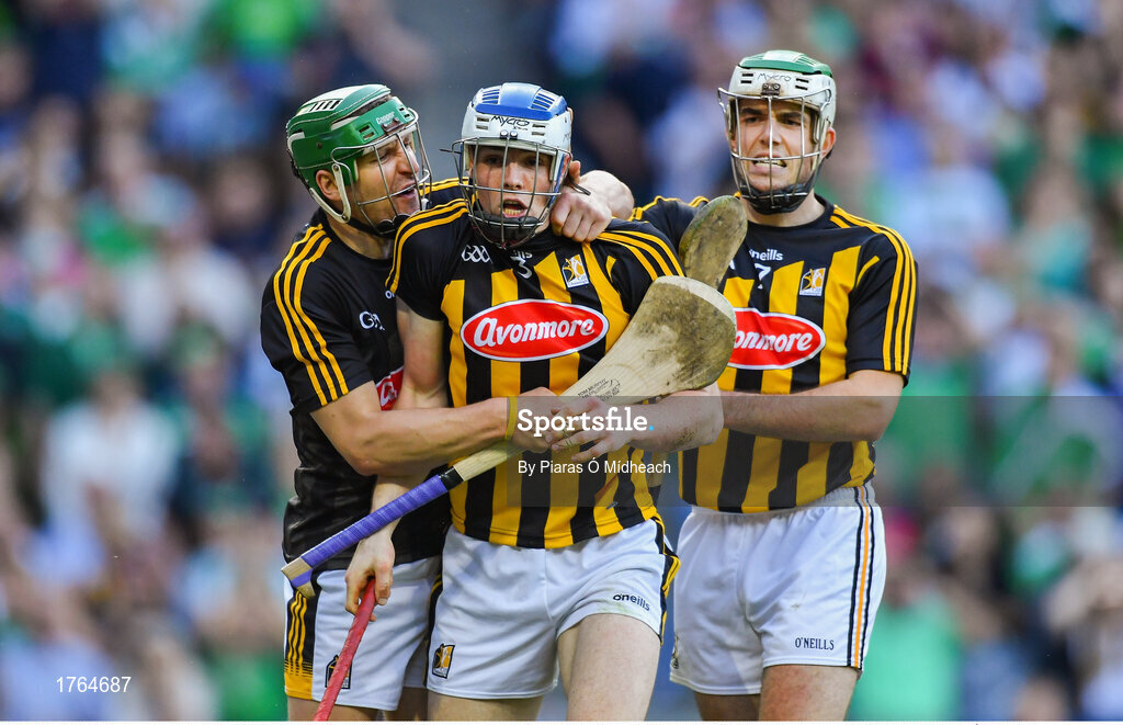 27 July 2019; Kilkenny goalkeeper Eoin Murphy, left, and Paddy Deegan, right, congratulate Huw Lawlor, centre, after he stopped a goal opportunity during the GAA Hurling All-Ireland Senior Championship Semi-Final match between Kilkenny and Limerick at Croke Park in Dublin. Photo by Piaras Ó Mídheach/Sportsfile