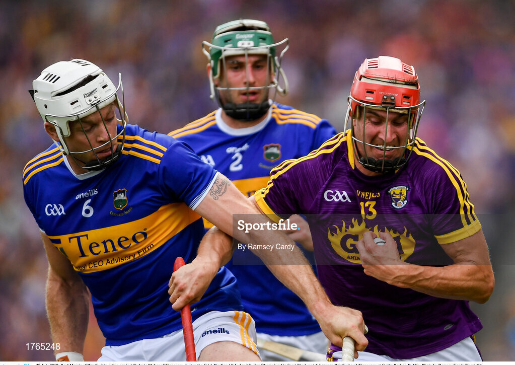 28 July 2019; Paul Morris of Wexford in action against Padraic Maher of Tipperary during the GAA Hurling All-Ireland Senior Championship Semi Final match between Wexford and Tipperary at Croke Park in Dublin. Photo by Ramsey Cardy/Sportsfile
