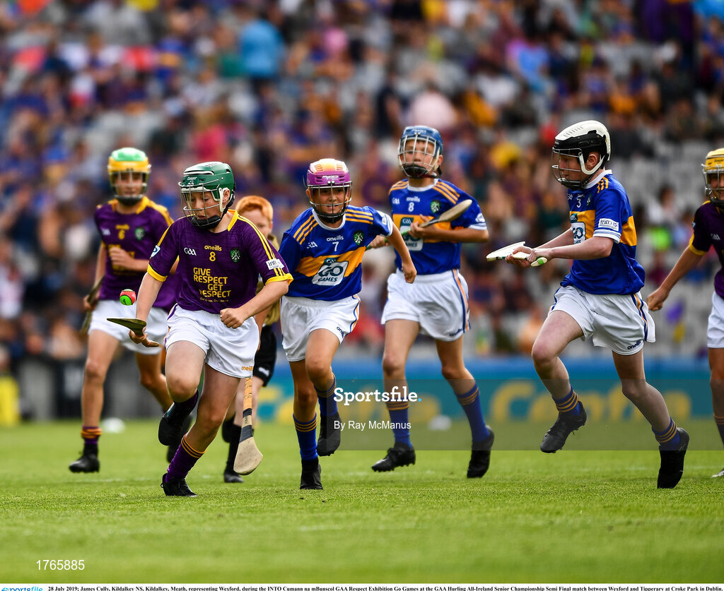 28 July 2019; James Cully, Kildalkey NS, Kildalkey, Meath, representing Wexford, during the INTO Cumann na mBunscol GAA Respect Exhibition Go Games at the GAA Hurling All-Ireland Senior Championship Semi Final match between Wexford and Tipperary at Croke Park in Dublin. Photo by Ray McManus/Sportsfile