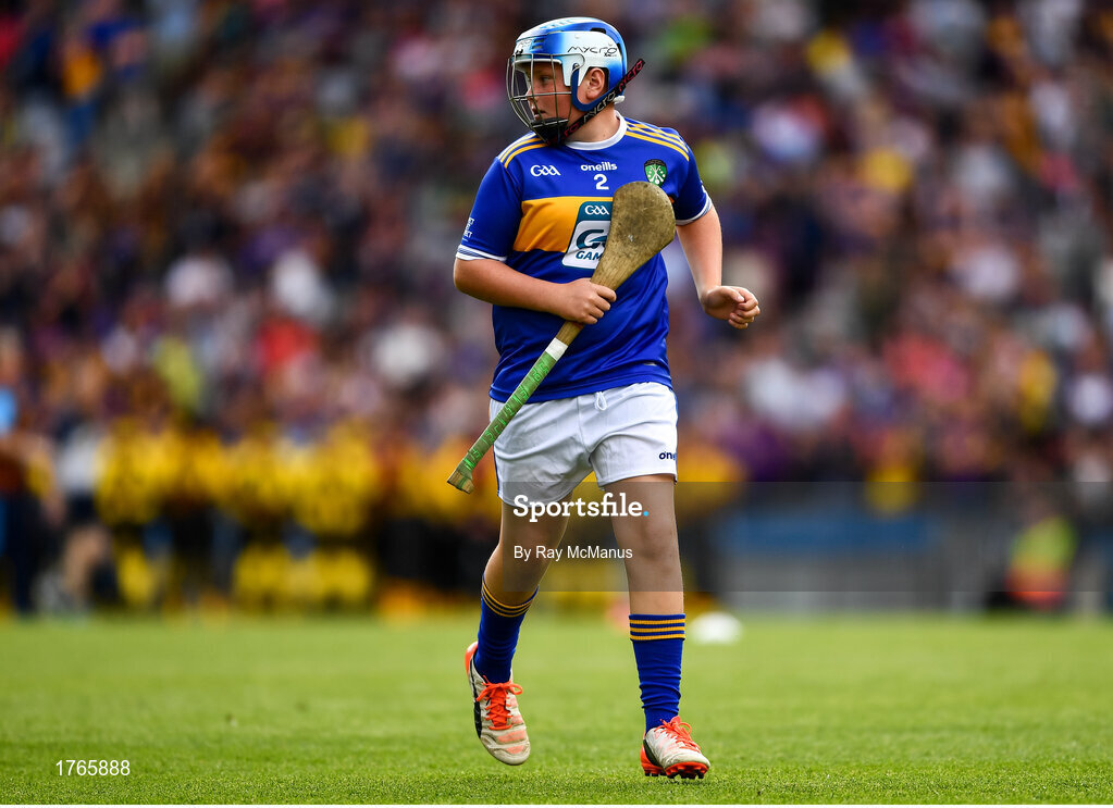 28 July 2019; Damian Leddy, Ballyhaise NS, Ballyhaise, Cavan, representing Tipperary, during the INTO Cumann na mBunscol GAA Respect Exhibition Go Games at the GAA Hurling All-Ireland Senior Championship Semi Final match between Wexford and Tipperary at Croke Park in Dublin. Photo by Ray McManus/Sportsfile
