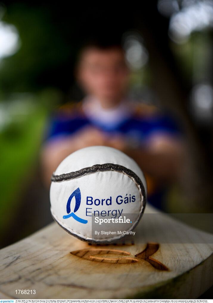 31 July 2019; At The Bord Gáis Energy GAA Hurling All-Ireland U-20 Championship semi-finals preview event in Dublin is Tipperary's Paddy Cadell. He was joined by Joe Canning and Ger Cunningham, who were announced as judges for the Bord Gáis Energy U-20 Player of the Year Award, Wexford's Charlie Mc Guckin, Kilkenny’s Adrian Mullen and Cork’s Brian Turnbull. Kerry’s Adam O’Sullivan and Down’s Ruairí McCrickard were also in Dublin to look forward the Richie McElligott Cup decider. Photo by Stephen McCarthy/Sportsfile