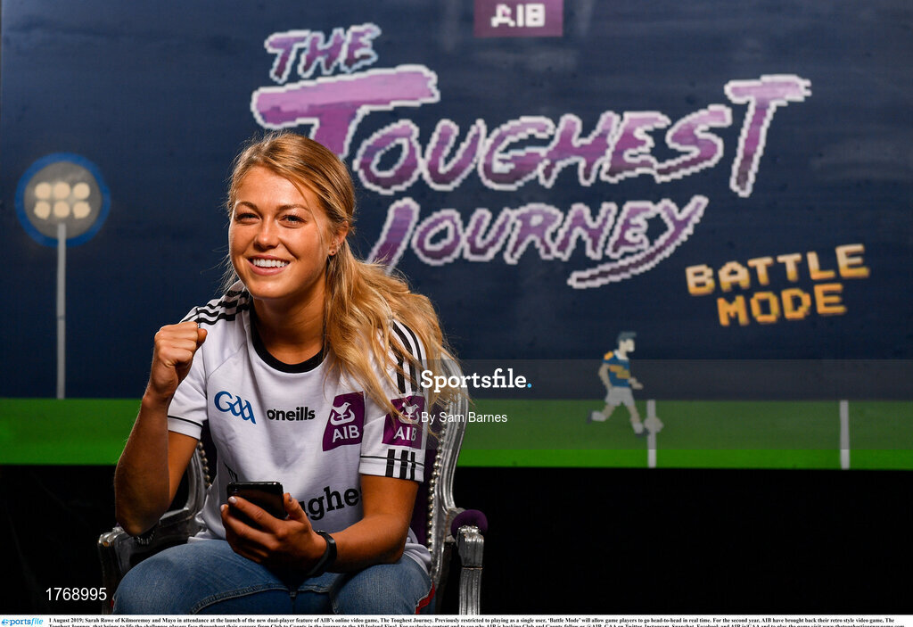 1 August 2019; Sarah Rowe of Kilmoremoy and Mayo in attendance at the launch of the new dual-player feature of AIB’s online video game, The Toughest Journey. Previously restricted to playing as a single user, ‘Battle Mode’ will allow game players to go head-to-head in real time. For the second year, AIB have brought back their retro style video game, The Toughest Journey, that brings to life the challenges players face throughout their careers from Club to County in the journey to the All-Ireland Final. For exclusive content and to see why AIB is backing Club and County follow us @AIB_GAA on Twitter, Instagram, Snapchat, Facebook and AIB.ie/GAA and to play the game visit www.thetoughestjourneygame.com. Photo by Sam Barnes/Sportsfile