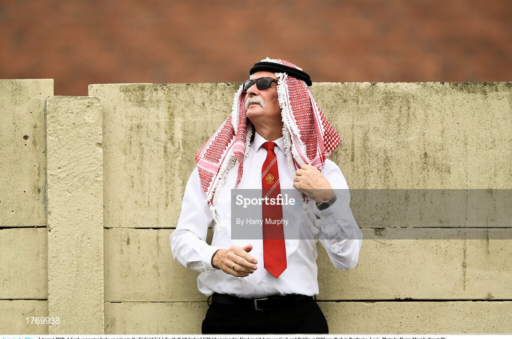 3 August 2019; A Cork supporter looks on prior to the EirGrid GAA Football All-Ireland U20 Championship Final match between Cork and Dublin at O’Moore Park in Portlaoise, Laois. Photo by Harry Murphy/Sportsfile