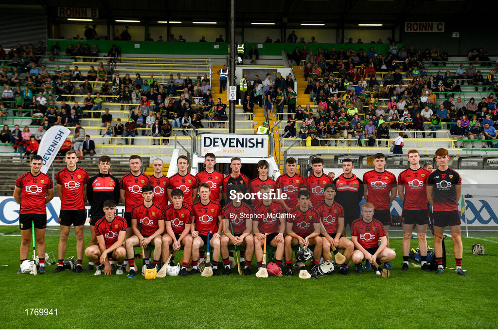 3 August 2019; The Down squad prior to the Bord Gais Energy GAA Hurling All-Ireland U20B Championship Final match between Down and Kerry at Páirc Tailteann in Navan, Meath. Photo by Stephen McCarthy/Sportsfile
