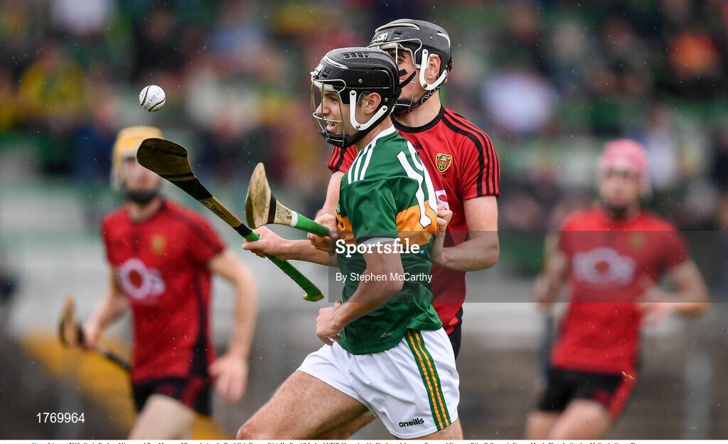3 August 2019; Gavin Dooley of Kerry and Tom Murray of Down during the Bord Gais Energy GAA Hurling All-Ireland U20B Championship Final match between Down and Kerry at Páirc Tailteann in Navan, Meath. Photo by Stephen McCarthy/Sportsfile