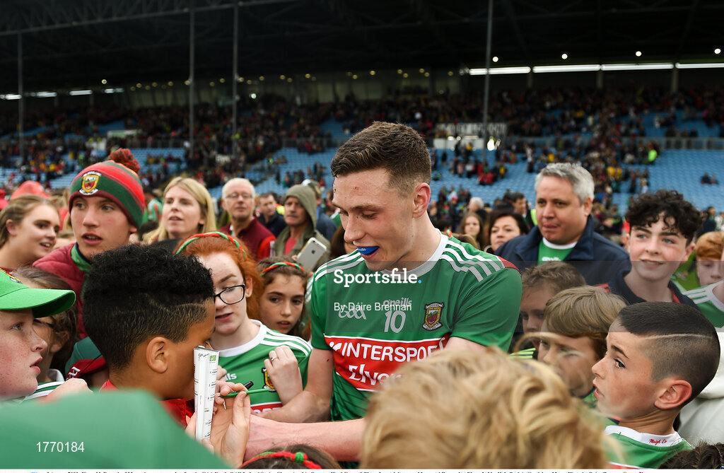 3 August 2019; Fionn McDonagh of Mayo signs autographs after the GAA Football All-Ireland Senior Championship Quarter-Final Group 1 Phase 3 match between Mayo and Donegal at Elvery’s MacHale Park in Castlebar, Mayo. Photo by Daire Brennan/Sportsfile
