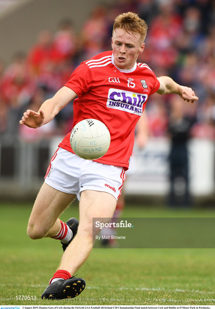 3 August 2019; Damien Gore of Cork during the EirGrid GAA Football All-Ireland U20 Championship Final match between Cork and Dublin at O’Moore Park in Portlaoise, Laois. Photo by Matt Browne/Sportsfile