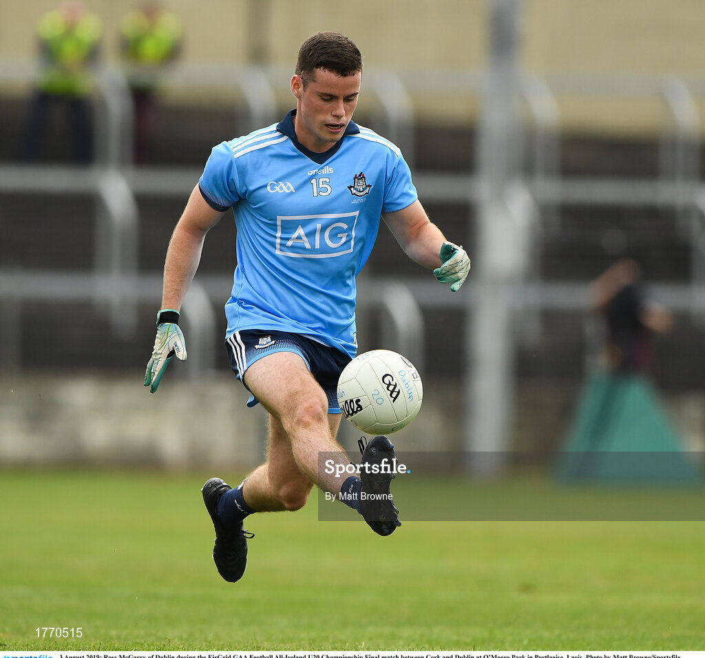 3 August 2019; Ross McGarry of Dublin during the EirGrid GAA Football All-Ireland U20 Championship Final match between Cork and Dublin at O’Moore Park in Portlaoise, Laois. Photo by Matt Browne/Sportsfile