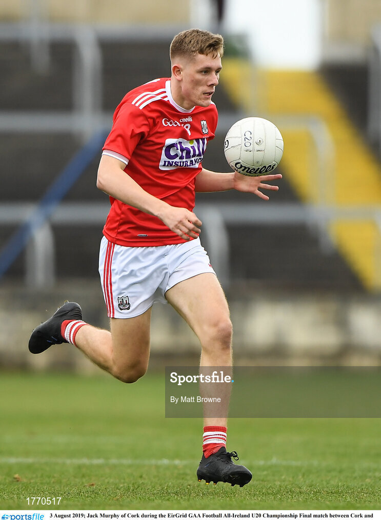3 August 2019; Jack Murphy of Cork during the EirGrid GAA Football All-Ireland U20 Championship Final match between Cork and Dublin at O’Moore Park in Portlaoise, Laois. Photo by Matt Browne/Sportsfile