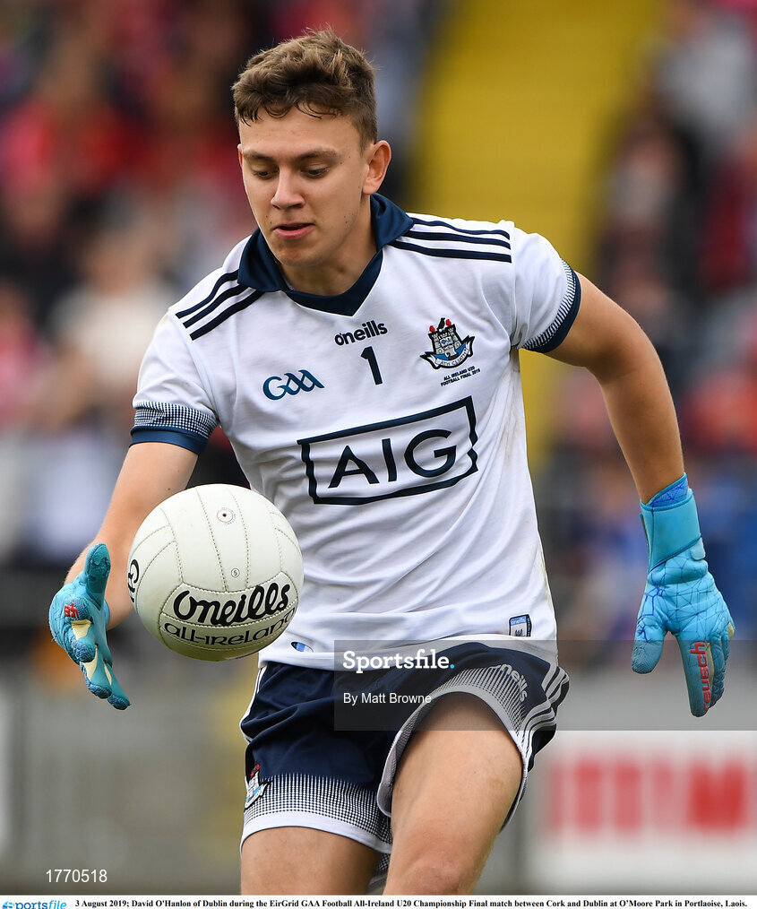 3 August 2019; David O'Hanlon of Dublin during the EirGrid GAA Football All-Ireland U20 Championship Final match between Cork and Dublin at O’Moore Park in Portlaoise, Laois. Photo by Matt Browne/Sportsfile