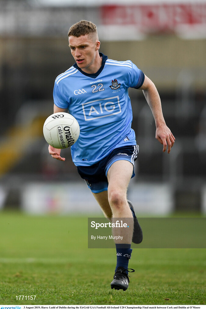 3 August 2019; Harry Ladd of Dublin during the EirGrid GAA Football All-Ireland U20 Championship Final match between Cork and Dublin at O’Moore Park in Portlaoise, Laois. Photo by Harry Murphy/Sportsfile