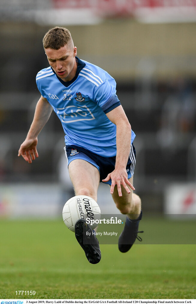 3 August 2019; Harry Ladd of Dublin during the EirGrid GAA Football All-Ireland U20 Championship Final match between Cork and Dublin at O’Moore Park in Portlaoise, Laois. Photo by Harry Murphy/Sportsfile