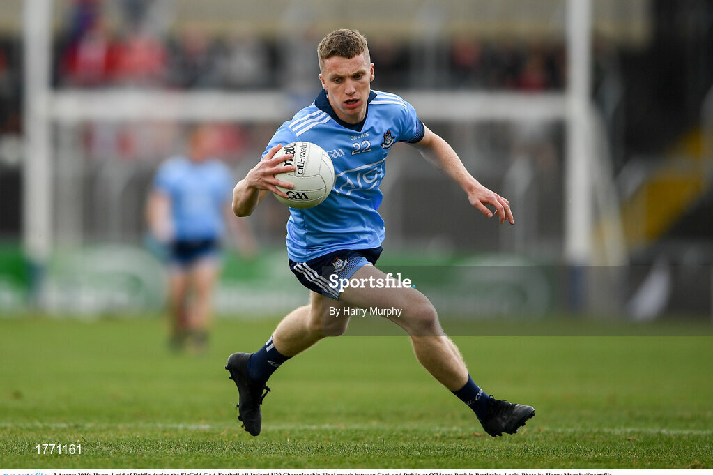3 August 2019; Harry Ladd of Dublin during the EirGrid GAA Football All-Ireland U20 Championship Final match between Cork and Dublin at O’Moore Park in Portlaoise, Laois. Photo by Harry Murphy/Sportsfile