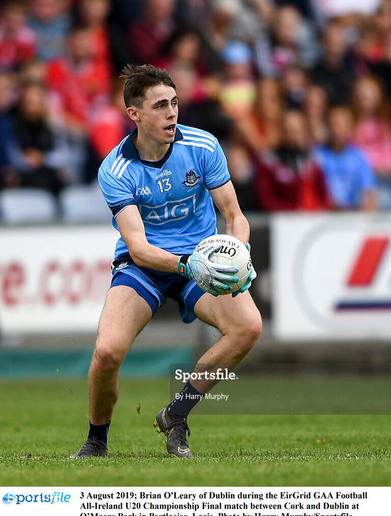 3 August 2019; Brian O'Leary of Dublin during the EirGrid GAA Football All-Ireland U20 Championship Final match between Cork and Dublin at O’Moore Park in Portlaoise, Laois. Photo by Harry Murphy/Sportsfile