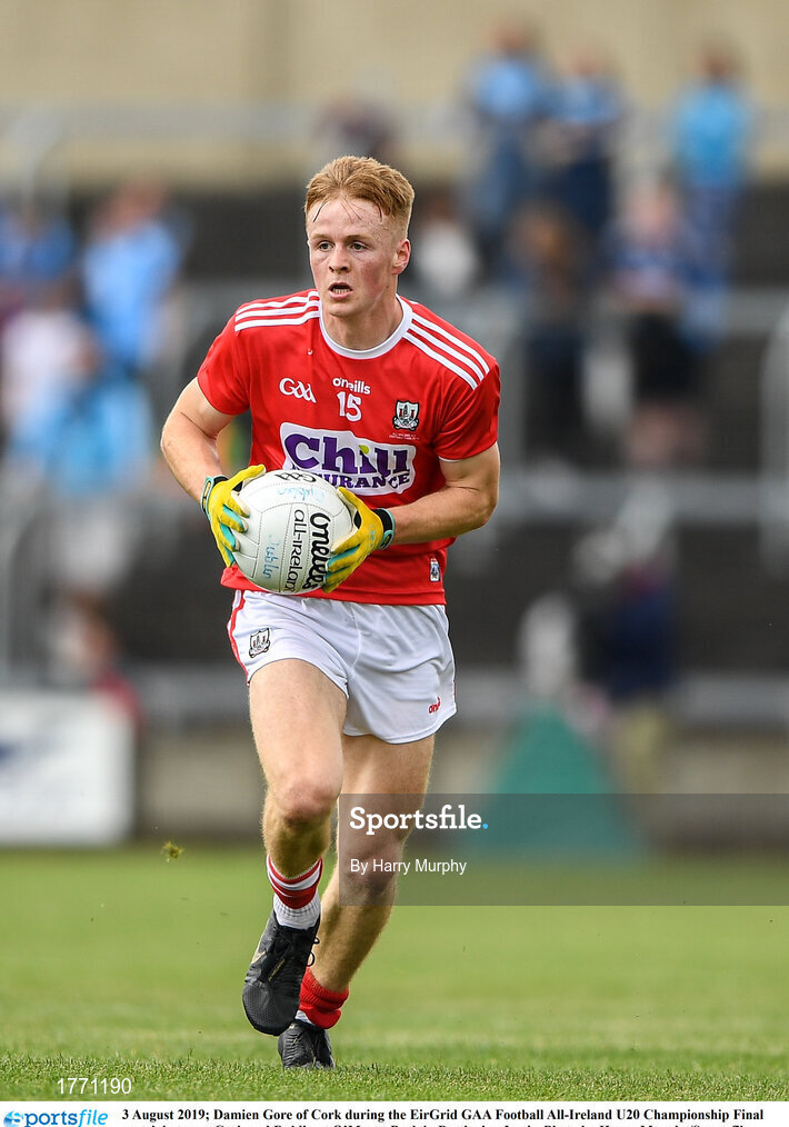 3 August 2019; Damien Gore of Cork during the EirGrid GAA Football All-Ireland U20 Championship Final match between Cork and Dublin at O’Moore Park in Portlaoise, Laois. Photo by Harry Murphy/Sportsfile