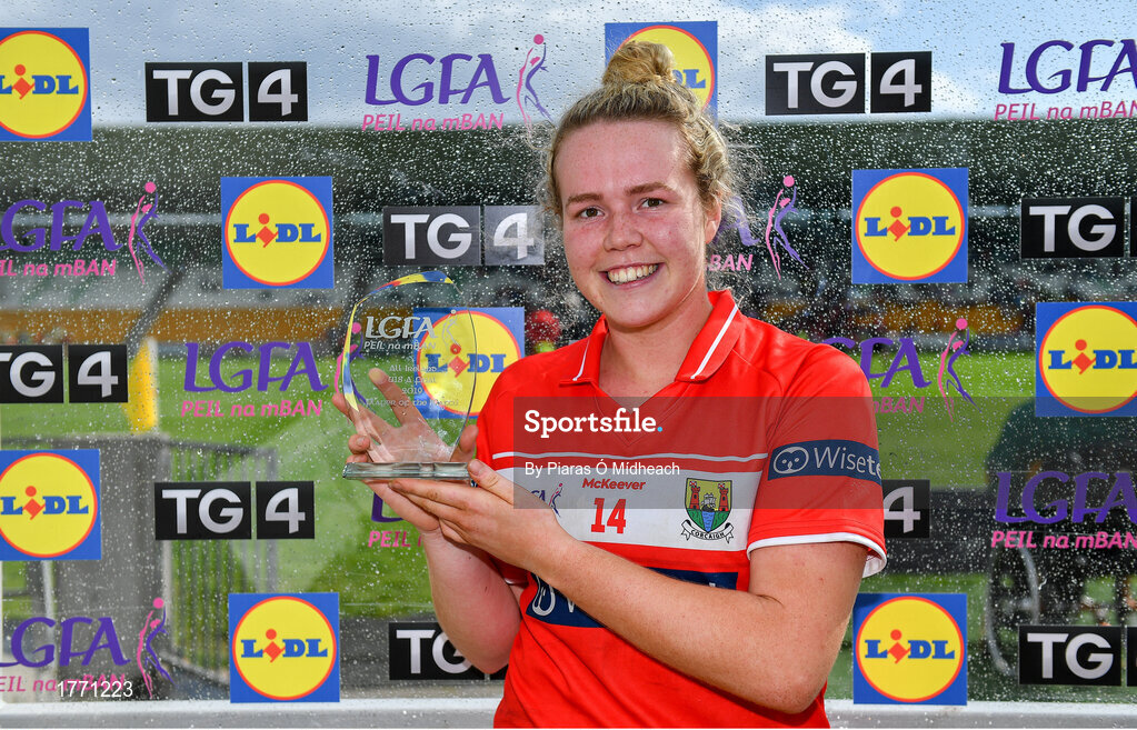 5 August 2019; Player of the Match Katie Quirke of Cork with her award following the All-Ireland Ladies Football Minor A Championship Final match between Cork and Monaghan at Bord na Móna O'Connor Park in Tullamore, Offaly. Photo by Piaras Ó Mídheach/Sportsfile