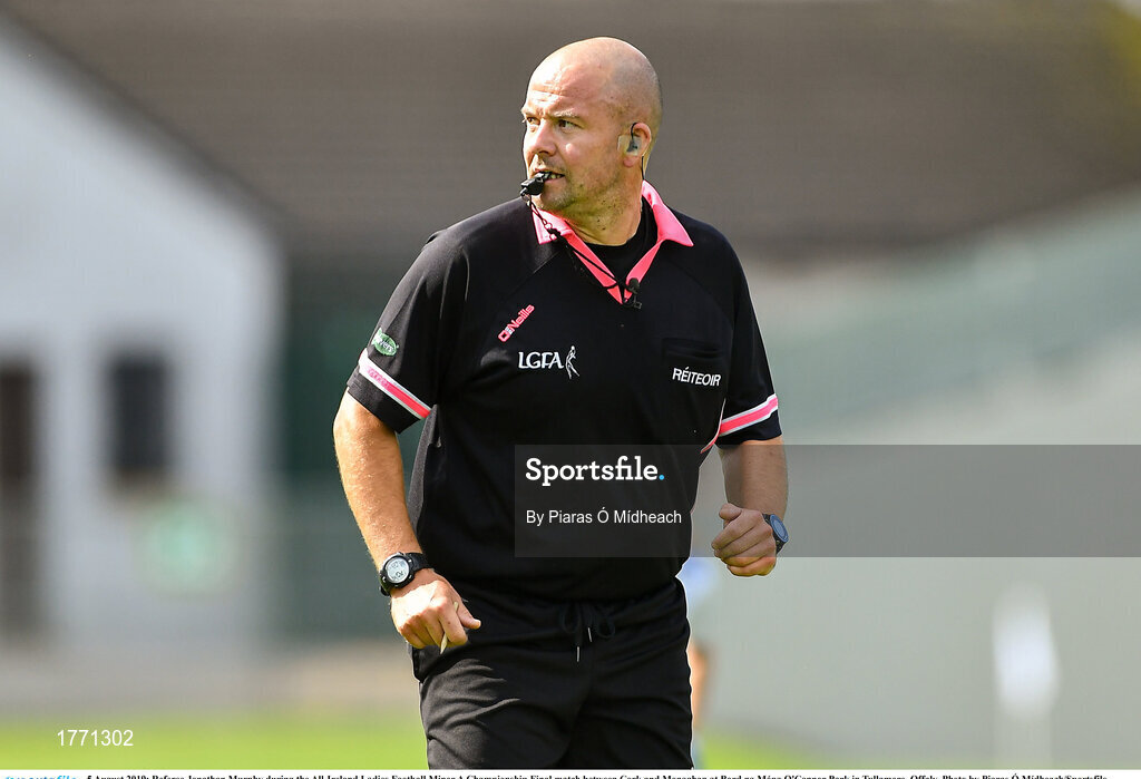 5 August 2019; Referee Jonathan Murphy during the All-Ireland Ladies Football Minor A Championship Final match between Cork and Monaghan at Bord na Móna O'Connor Park in Tullamore, Offaly. Photo by Piaras Ó Mídheach/Sportsfile