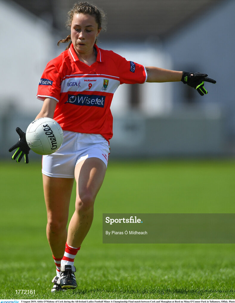 5 August 2019; Abbie O'Mahony of Cork during the All-Ireland Ladies Football Minor A Championship Final match between Cork and Monaghan at Bord na Móna O'Connor Park in Tullamore, Offaly. Photo by Piaras Ó Mídheach/Sportsfile