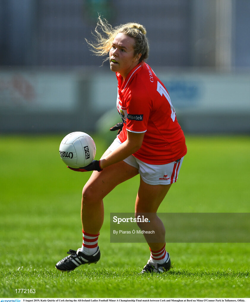 5 August 2019; Katie Quirke of Cork during the All-Ireland Ladies Football Minor A Championship Final match between Cork and Monaghan at Bord na Móna O'Connor Park in Tullamore, Offaly. Photo by Piaras Ó Mídheach/Sportsfile